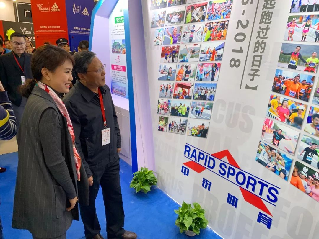 中國田徑協(xié)會(huì)主席段世杰蒞臨中銳體育展位參觀指導(dǎo),中銳體育總經(jīng)理劉曉磊陪同